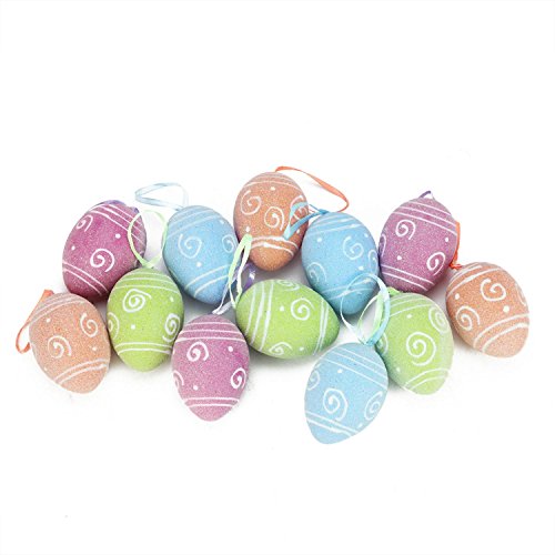 -. Feature : Set of 12 Easter Egg Ornaments / Multi-Color Glitter Eggs / Swirled and Striped Design / Ready-to-Hang / Comes in a Window Box