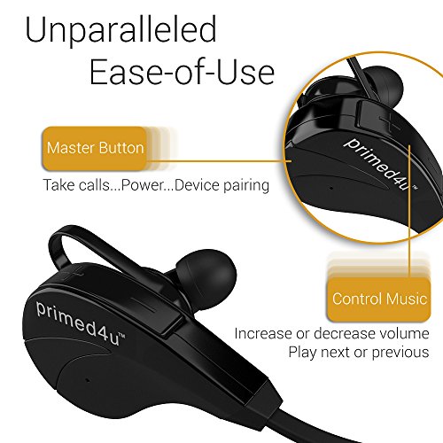 Bluetooth Headphone, Primed4U Bluetooth Earbuds V5.1 Black Wireless Headset with Mic In-Ear AptX Stereo Sweatproof Sports [for Bluetooth Devices 4.x and higher]