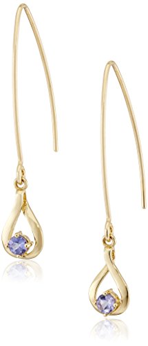 Light weight gold drop earrings with 3mm round tanzanite center stones