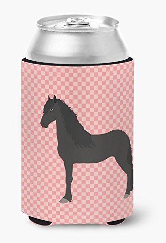 Caroline's Treasures BB7915CC Friesian Horse Pink Check Decorative, Can Hugger, Multicolor