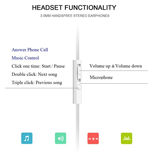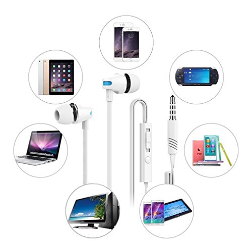 LSD Headphones In ear Earphones Wired Silicon Earbuds 3.5mm Headsets with Microphone & Remote Control Earpieces for iPhone, iPad, Android Smartphones, Mp3/mp4 Player, Laptop. (White)