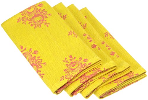 (Mahogany)/Kitchen Dining/Kitchen Table Linens/DIRECT FROM USA/Mahogany T422NP Square Country Rose Jacquard Napkin, 19 by 19-Inch, Yellow/Red, Set of 4
