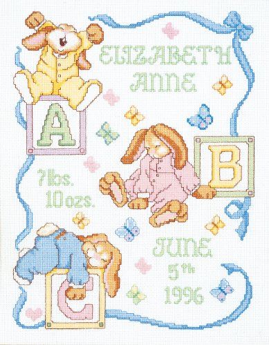 Janlynn Cross Stitch Kit, Sleepy Bunnies Birth Announcement