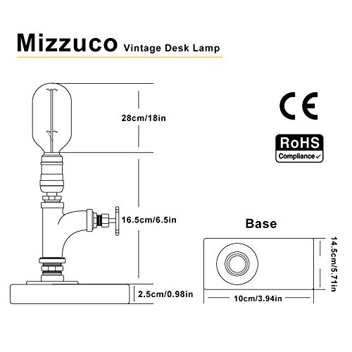 Vintage Desk Lamp,Dimmable Retro Industrial Desk Light Iron Pipe Table Lamp