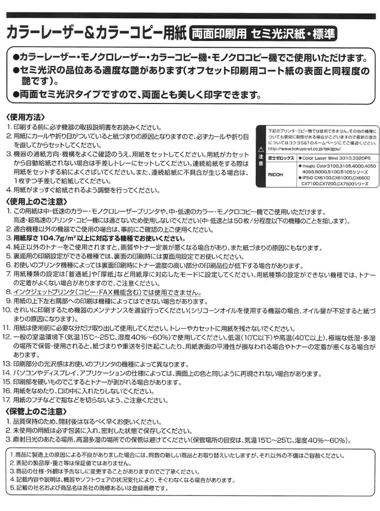 A4 250 sheets LBP-FH1815 Kokuyo color laser and color copy paper for double-sided printing semi-glossy paper (japan import)