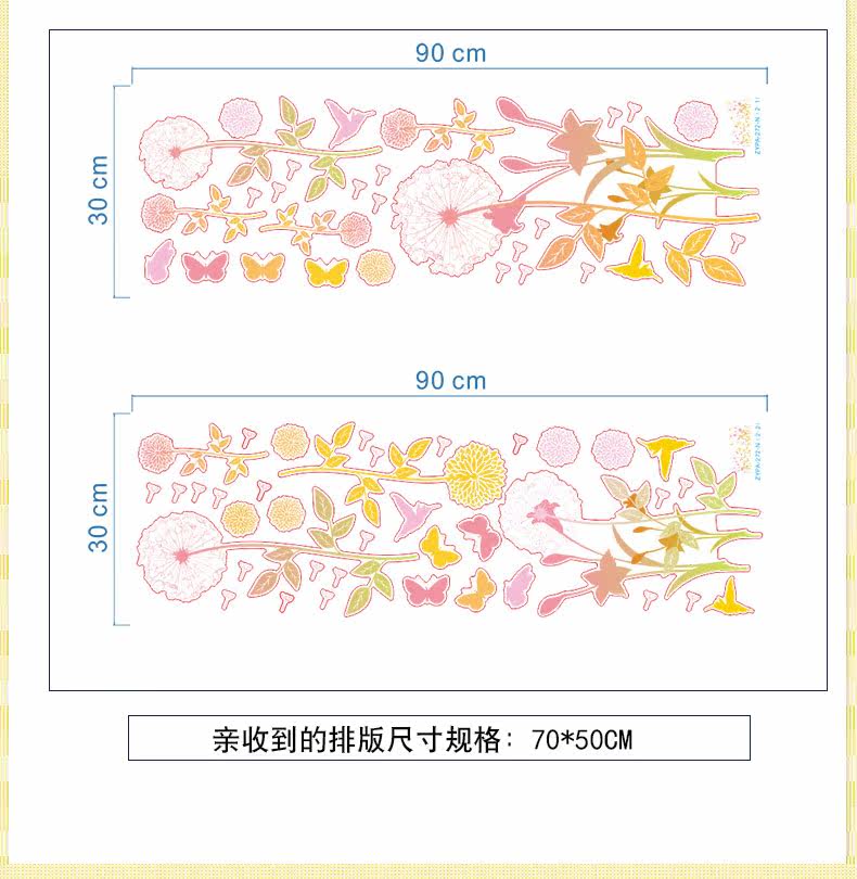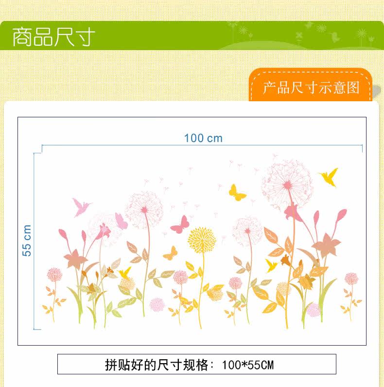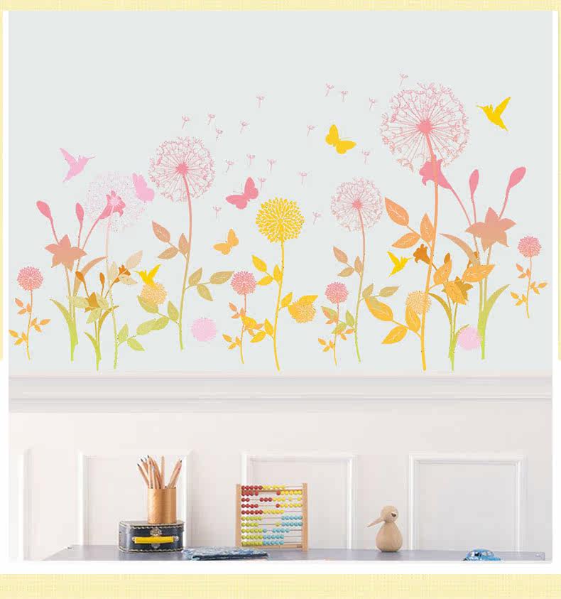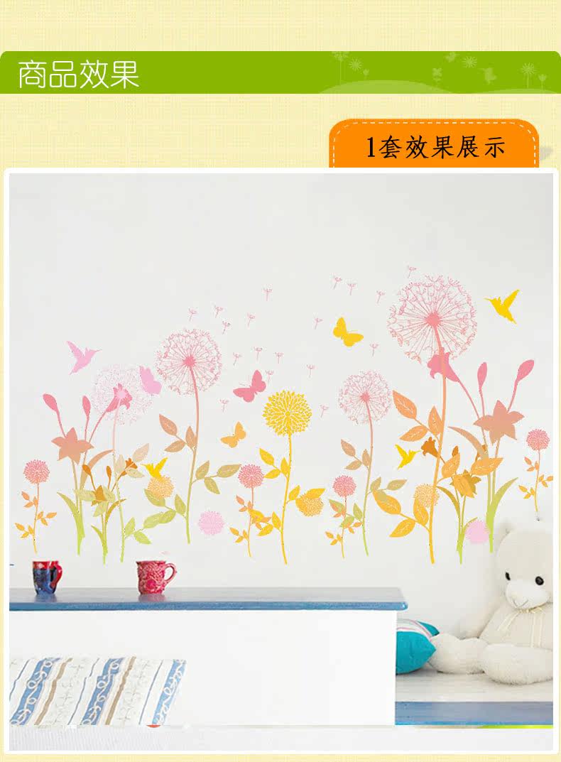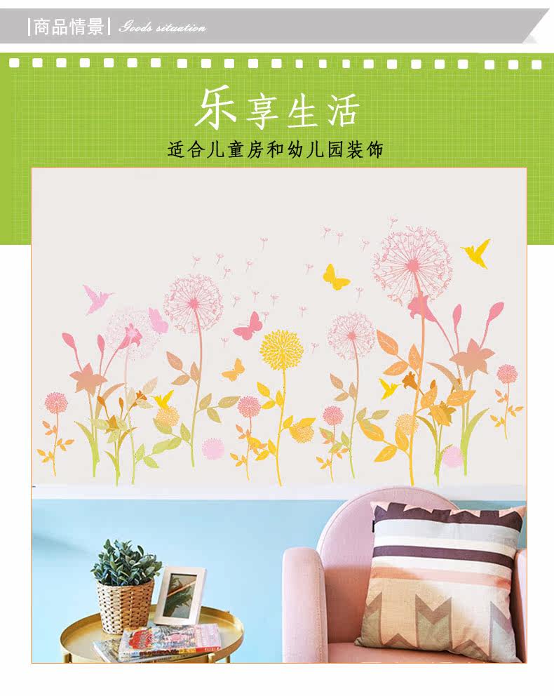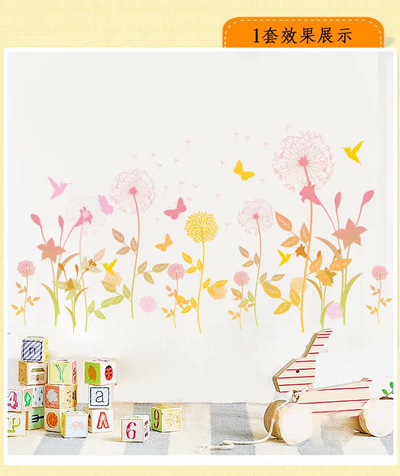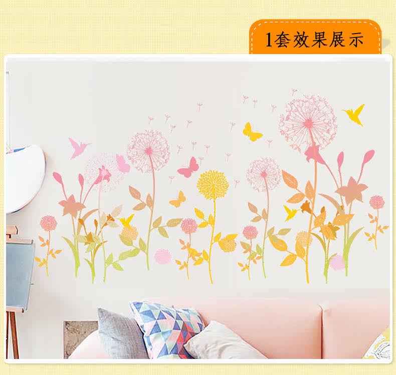 彩色蒲公英艺术墙贴客厅卧室走廊踢脚线环保装饰贴可移除壁纸贴