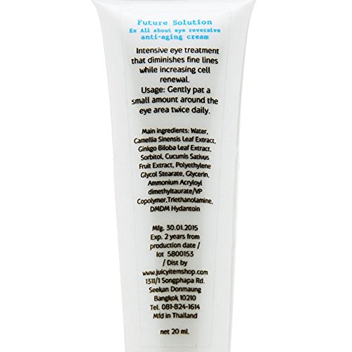 Juicy Skin Care Future Solution Ex All About Eye Reversive Anti-Aging Cream 20g / 0.7054 oz Intensive Eye Gel for dark circles, puffiness, bags & wrinkles. Natural collagen will help improve skin elasticity and hydration.