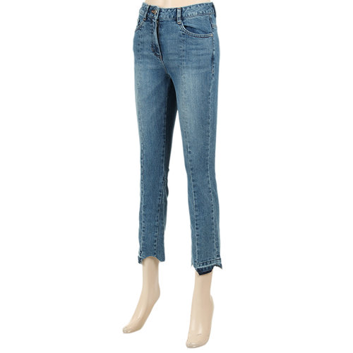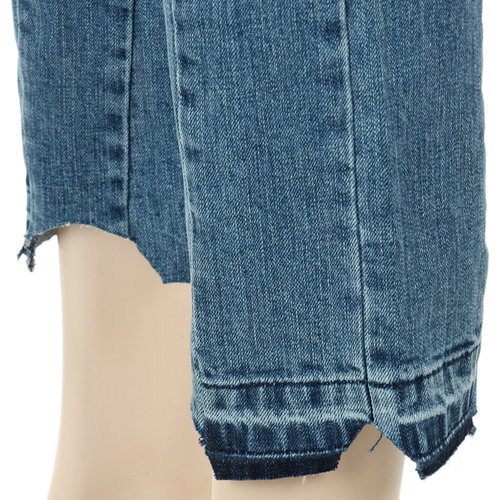 언밸런스한 컷팅 디테일이 멋스러운 부츠컷 데님팬츠입니다.