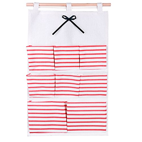 Happy Hours - Linen Hanging Multiple Layers Storage Bag / Square Shape Stripes Debris Arrangement Hanging Shelf / Convenient Household Cloth Craft Wall Decoration(Eight grids,Pink)