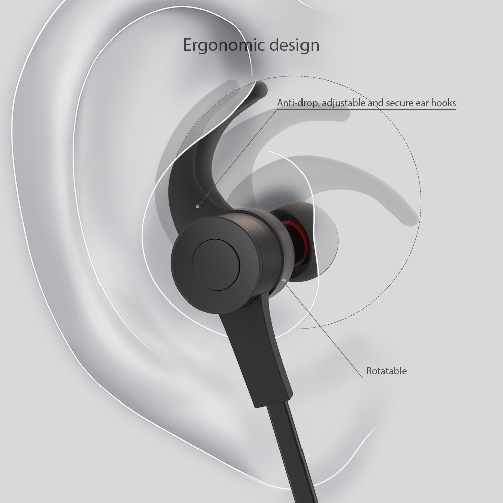 Moreover, 24-bit high resolution sound can be enjoyed firmly when exercising with adjustable anti-sink horn-shaped ear hook, jogging and gym.