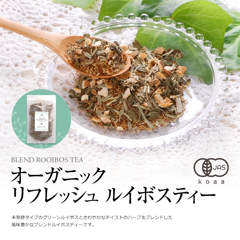 未発酵タイプのグリーンルイボスとさわやかなテイストのハーブをブレンドした風味豊かなブレンドルイボスティーです。