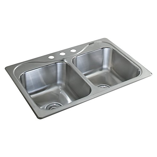 Sterling 11850-3-NA Southhaven 33-inch by 22-inch Top-mount Double Equal Bowl Kitchen Sink, Stainless Steel