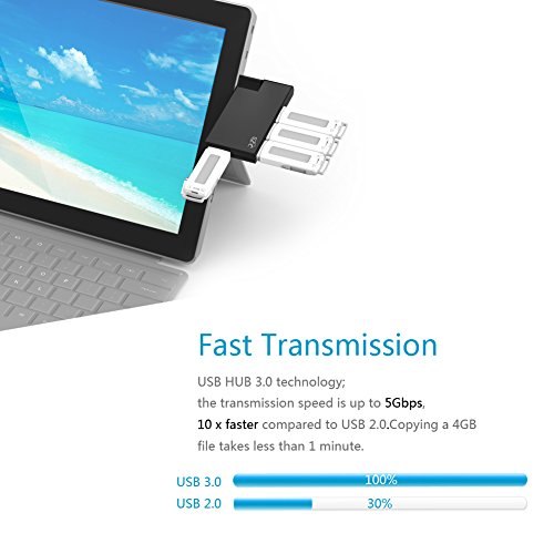 Good compatibility, fast transmission: The product uses USB HUB 3.0 technology; the transmission speed is up to 5Gbps, which is 10 x faster compared to USB 2.0. Copying a 4GB file takes less than 1 minute.