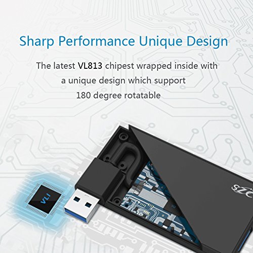 SZC 4-Port USB 3.0 Ultra Slim Rotatable Aluminum Data Hub With High Transfer Speed for iMac, Surface Pro,MacBook Air, Mac Mini and Laptop