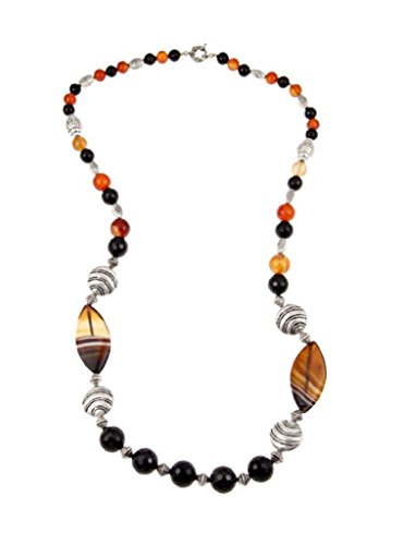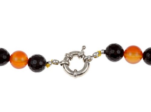 Accented with carnelian and faceted black onyx beads and decorative silver spacer beads