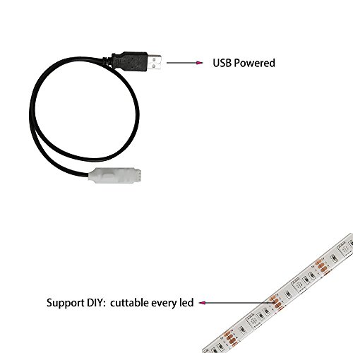 - ☀USB Powered led light strip with extra US adapter. It can be installed inside or outside and is great for computer light,tv backlight, accent lighting, patio lighting, auto lighting, and more.