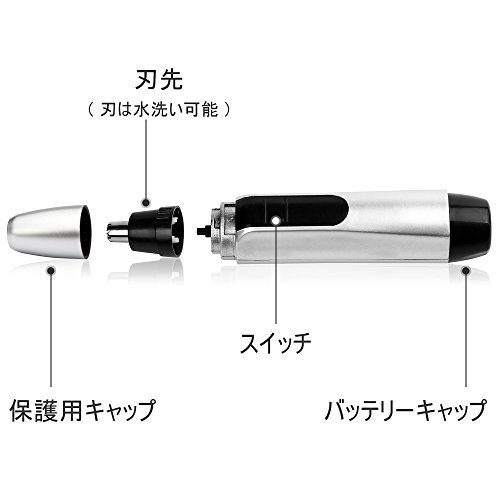 -. Feature : 鼻毛・耳毛カッター+折立ミラーのセットです。これ一台で鼻と耳の毛をスッキリ処理♪ / 刃先は丸くなって、直接肌に触れない構造で、皮膚を切る心配もありません♪ / 刃の部分は水洗いができて、専用ブラシも付属し、いつでも清潔に保てます。※刃の部分は水洗いできますが、本体は水洗いできません。 / 使用電池:単3アルカリ乾電池*1 ※電池は付属していません。 / 折立ミラー付:折り立て式なので、使わないときにはパタンと畳んでスペースいらず。鼻毛・耳毛カッター+折立ミラーのセットは持ち運びにも便利で、旅行や出張先でも身だしなみを整えられます。