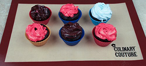 - DURABLE and LONG LASTING: Culinary Couture silicone baking mats can be used thousands of times! Heat-resistant performance in temperatures from -40 to 480 degrees Fahrenheit. Microwave, Oven, and Freezer safe. Use as a cookie sheet liner, pastry mat, or just for rolling dough. Makes for a great great wedding / bridal / birthday / kitchen shower present. Very kid-friendly too. A secret tool for every kitchen!