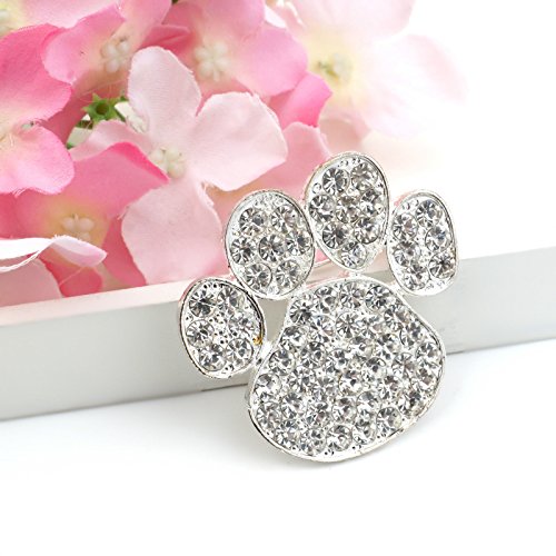 Clear Paw Brooch Pin Pet Dog Cat Rhinestone Diamante Crystal Gem Bling Novelty Fashion