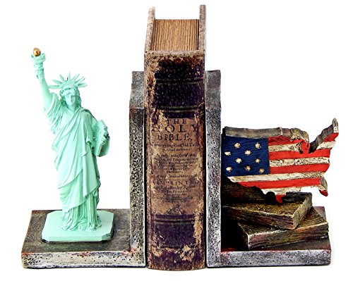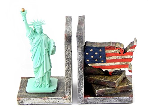 Decorative Bookends Statues of Liberty and USA Map Flag