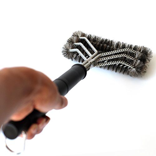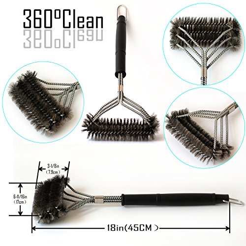 18" LONG HANDLE: With a handle measuring 18" your safe from the heat coming off your grill, as well as making it much easier to apply the pressure you need while having plenty of leverage.It will keep you safe from the heat generated by the barbecue grill and very effective for your BBQ grill cleaning.