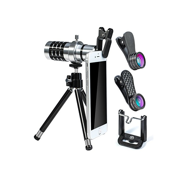 YIEASY 6점 세트(12X망원 렌즈 0.63X광각 렌즈 15X매크로 렌즈 198°어안렌즈 스마호호루다 삼각) 스마호 렌즈 자촬영 클립식 4in1카메라 렌즈 키트 간단장