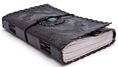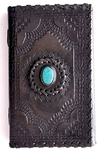 -. Feature : Genuine Leather Journal for use as Personal Diary, Scrapbook, Photo Album, Ledger, etc / Height 9 inches width 5 inches / 200 sides usable handmade cotton pages (100 pages) / Celtic Design embossed / Quality turquoise Stone stitched / Handcrafted from Eco-Friendly Leather With Recycled Paper