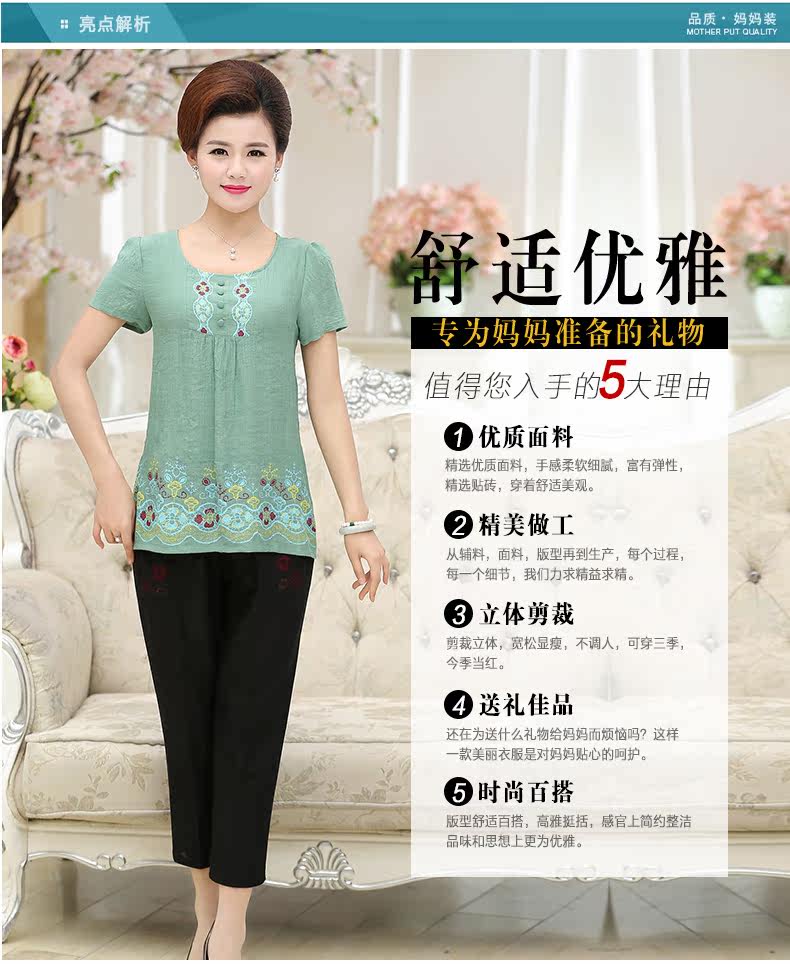 中老年女装夏装套装中年女装短袖40-50岁妈妈装套装夏季T恤裤子