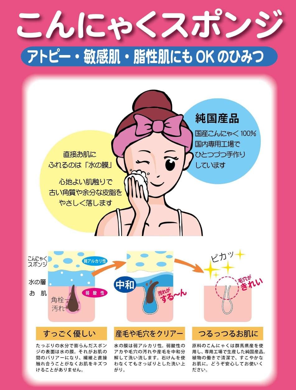 Konnyaku sponge raw material uses 100% Gunma prefecture food konjak flour, and coagulant used for hardening konjac is also produced hygienically at "Konnyaku sponge exclusive factory" using Kochi prefecture production.