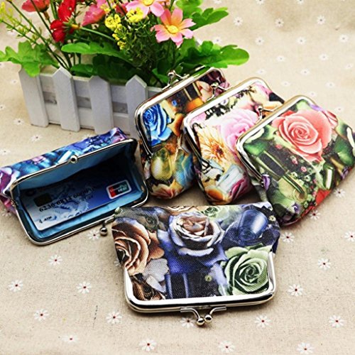 -. Title : Purse, Mikey Store Women Lady Retro Vintage Rose Flower Wallet Hasp Purse Clutch Bag (Green)