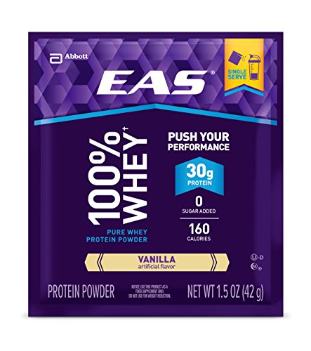 ReleaseDate : 2016-03-26 Studio : EAS Publisher : EAS Binding : Health and Beauty Product Description Push your performance with EAS 100% Whey Protein Powder Packets. One packet provides you with 30 grams of protein and 7.3 grams of naturally occuring BCAAs to aid in muscle recovery with no added sugars, fillers or blends. No matter your goal, athletic ability or body type, we have a proven legacy of trusted, innovative sports nutrition products designed especially for you. 0