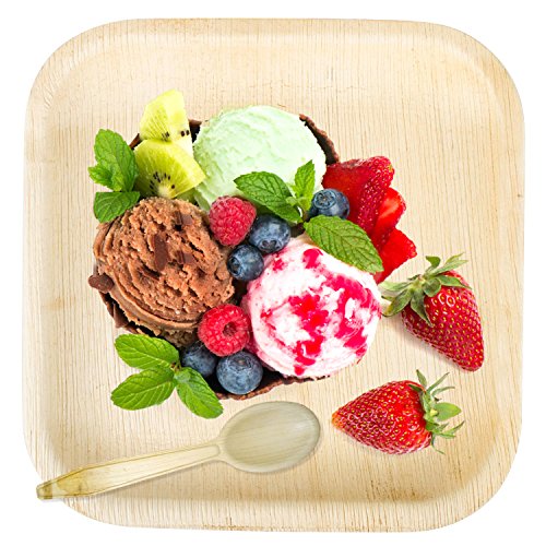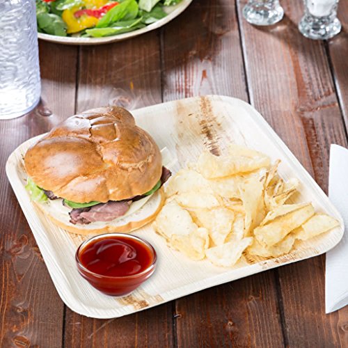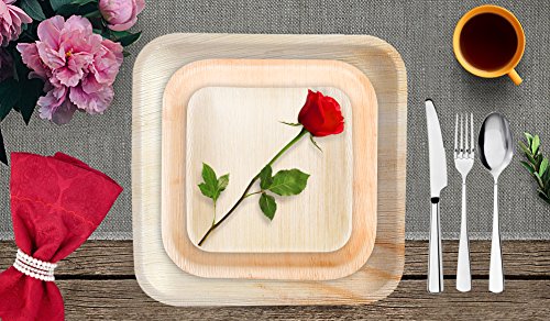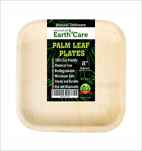 Set of 25 Plates, Square Shape, 8 Inches : These Disposable plates are made from natural fallen palm leaves. Biodegradable, safe and a great alternative to foam and paper plates. Better for the Earth. These are super eco-friendly as they are made from 100% natural material