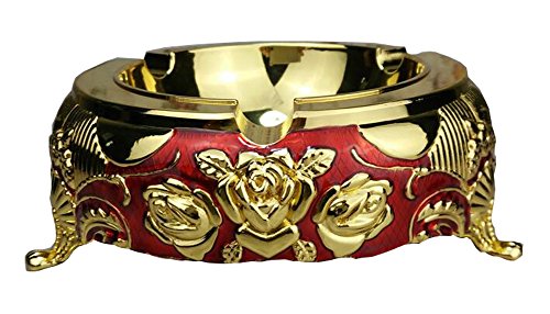 -. Title : Home Ashtray Metal Cigarette Office Table Ashtray - Red and Gold