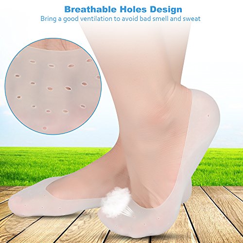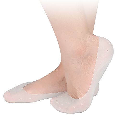 Soumit 1 Pair of Unisex Silicone Gel Foot Socks, Non-slip Hidden Softening Spa for Say Goodbye to Cracked, Hard Exfoliating Skin & Hello to Baby Smooth Feet White