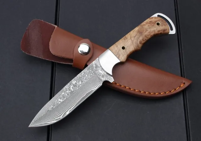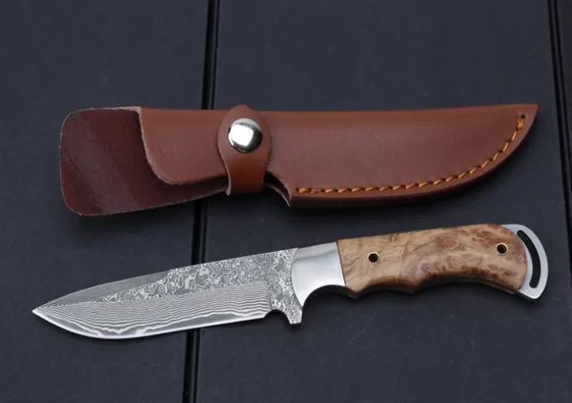 | [해외] Setsail 다마스커스 스트레이트 나이프 보물 컬렉션 선물 그림자 나무 핸들 사냥 생존 전술 야외 캠핑 나이프 |