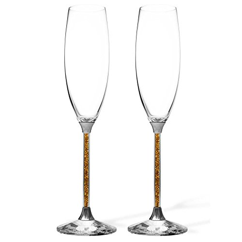 Studio : Matashi Publisher : Matashi Binding : Jewelry Product Description Quality crafted and with a beautifully slender design, this set is truly one of a kind. This charming set of 2 elegant crystal champagne glasses is sure to add a touch of elegance to any party. The hollow stem contains tens of tiny clear crystals that sparkle in the light and the design is simple yet eye catching! This beauty looks at home in the kitchen, dining room or at a party! Included in Box: Set of 2 champagne flutes with crystal filled stems Individually serialized Matashi warranty card ensuring the authenticity of your purchase. The perfect gift for any occasion: The gift ready packaging makes it easy to send this set of champagne glasses as a present, dowry or house warmer! Gift to a friend, loved one or as a treat to yourself! Guarantee and Warranty: We are 100% confident with our product and its quality. Your purchase is safe with a 30 day money back guarantee and a 2 year limited warranty on craftsmanship. Matashi: Matashi is a custom crystal design house based in the U.S.A. Using uniquely crafted designs and 100% authentic, highest standard crystals, Matashi creates beautiful pieces and gifts that have been enhancing lives for many years. 0 |
