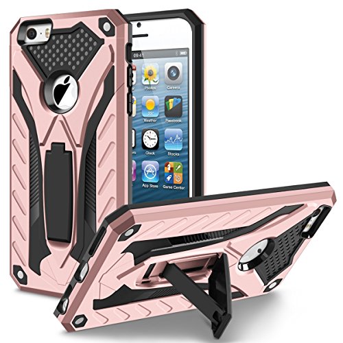 -. Feature : Compact fit: Perfectly compatible with Apple iPhone 5, iPhone 5s, iPhone SE, 100% fit. / Andvanced dual layer protection: Hybrid armor hard PC cover and impact resistant shockproof soft rubber bumper. / The outlocking built-in kickstand make your phone hands free in both vertical and horizontal view for watching videos. / Improved peripheral access: Precise cutouts and design, easy access to all buttons, cameras and ports. / Satisfaction guarantee: Lifetime warranty and best customer service to protect your valuable investment.