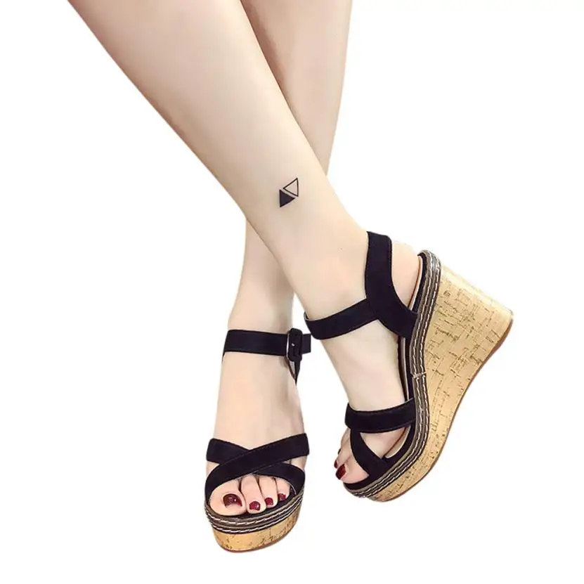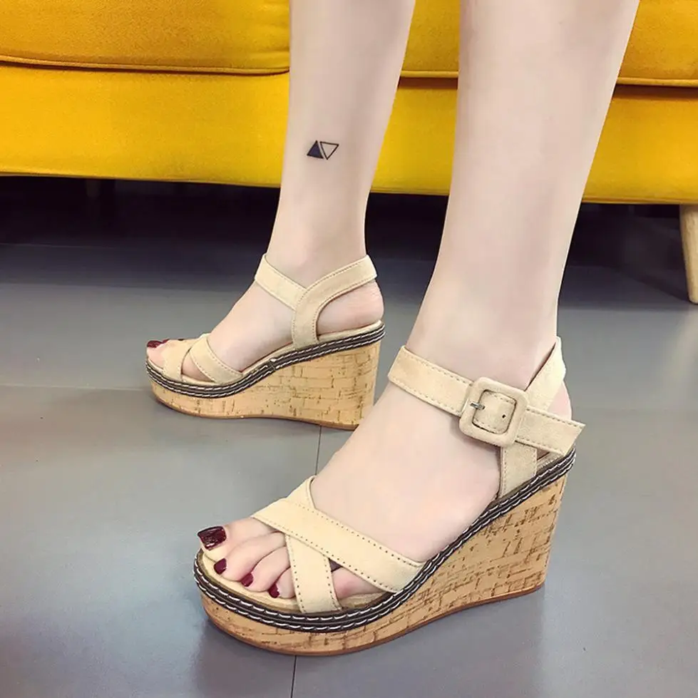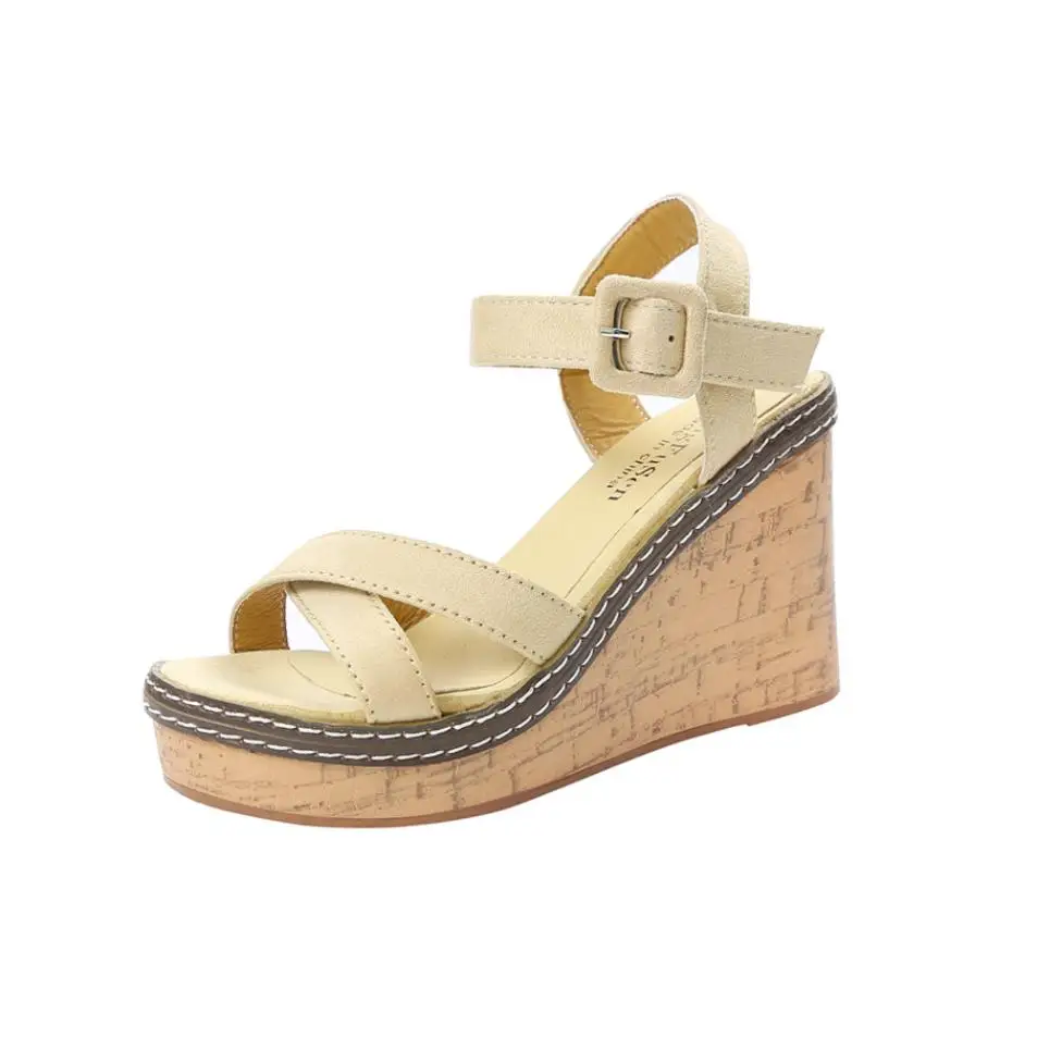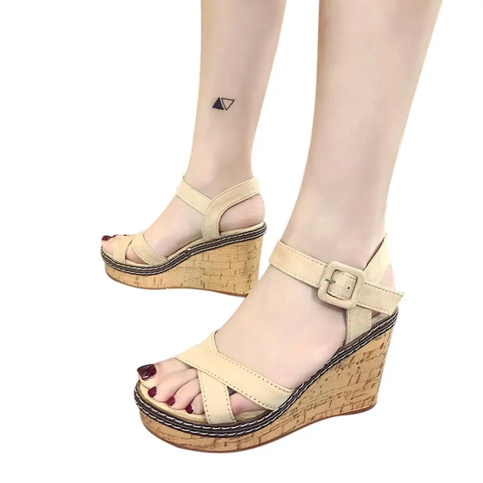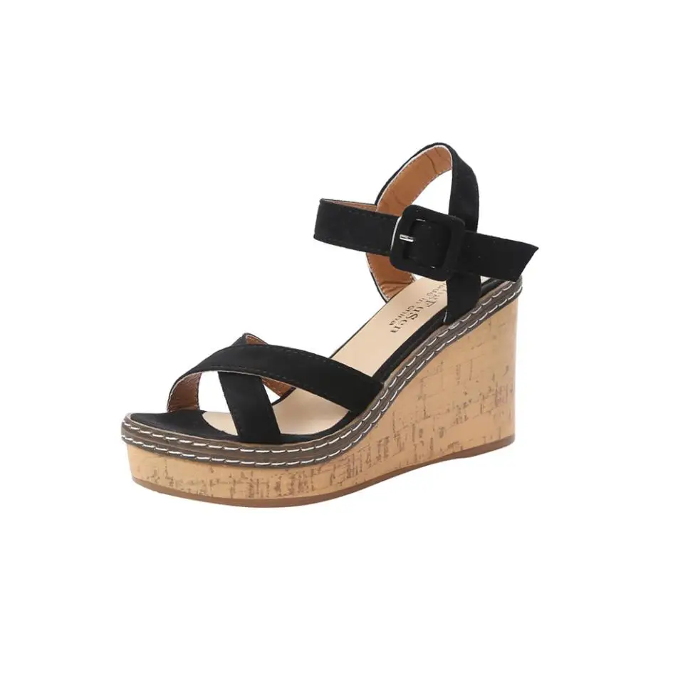 Model Number:Wedges sandals cross strap waterproof platform open toe word buckle wo