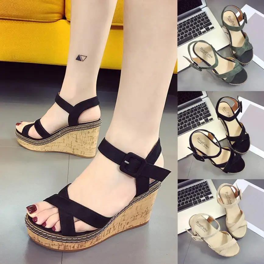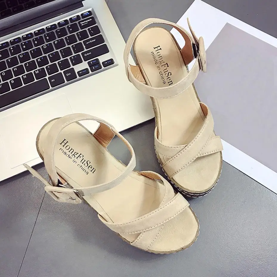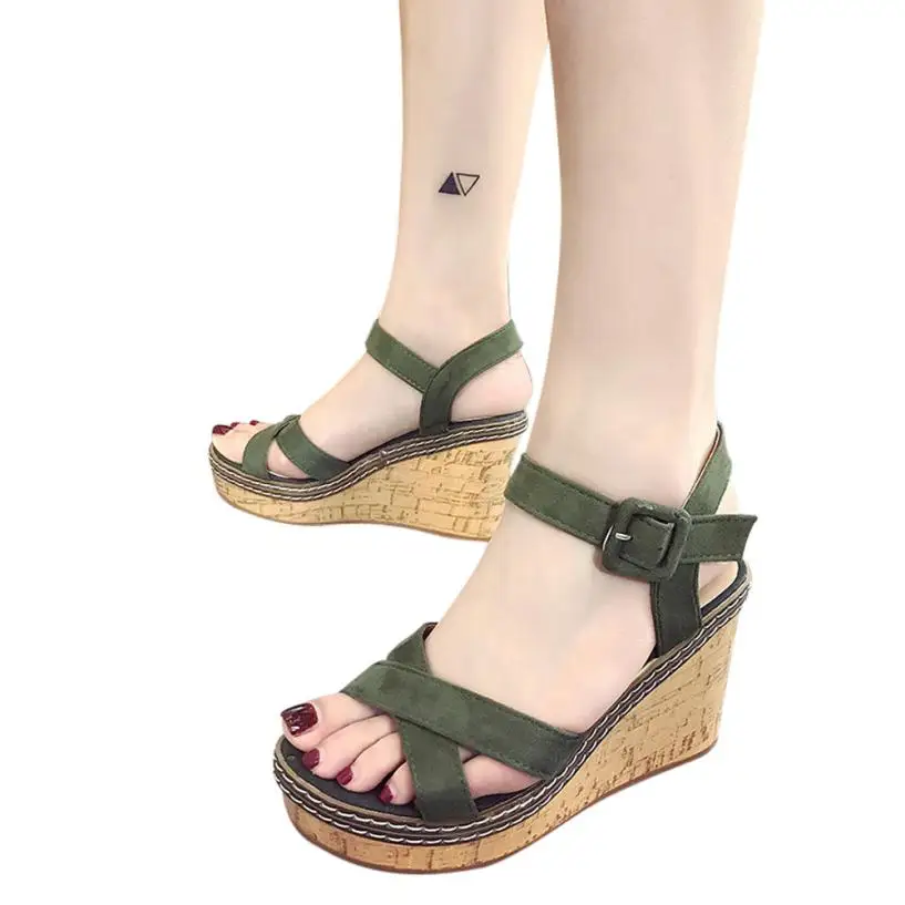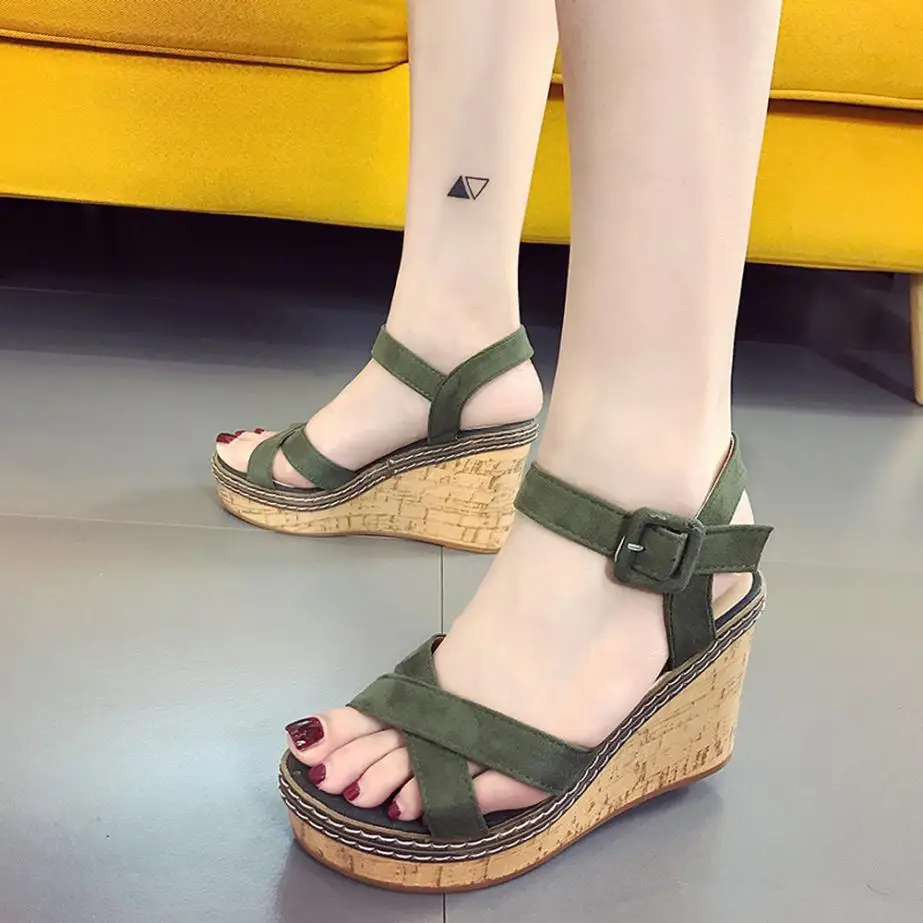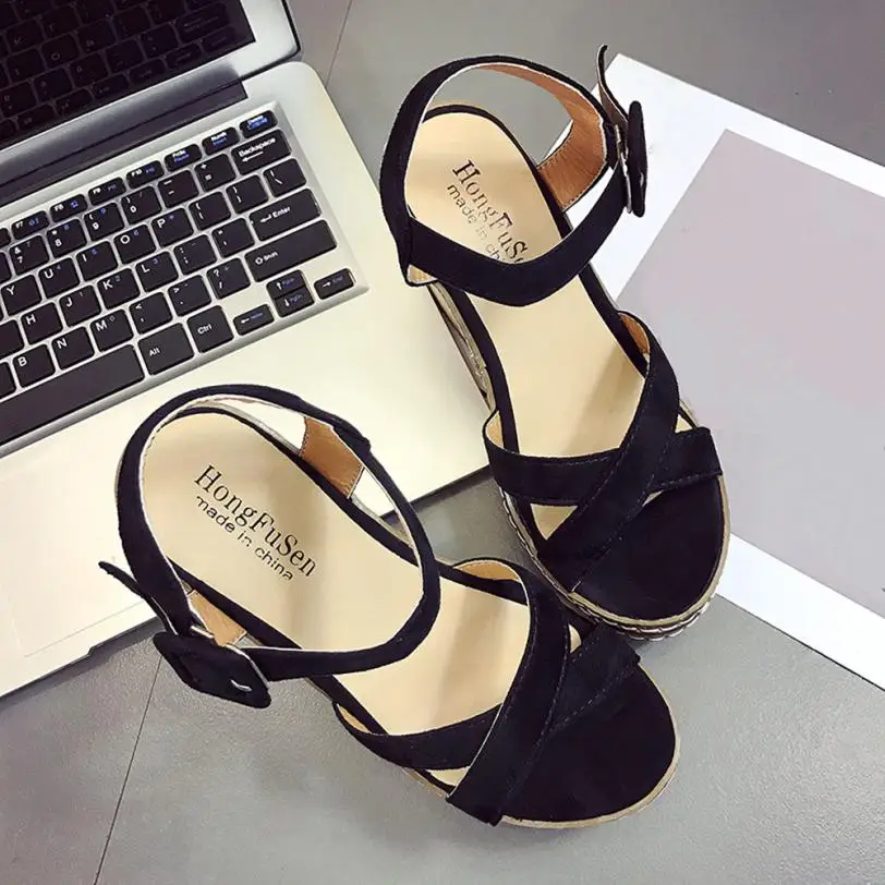 Model Number:Wedges sandals cross strap waterproof platform open toe word buckle wo