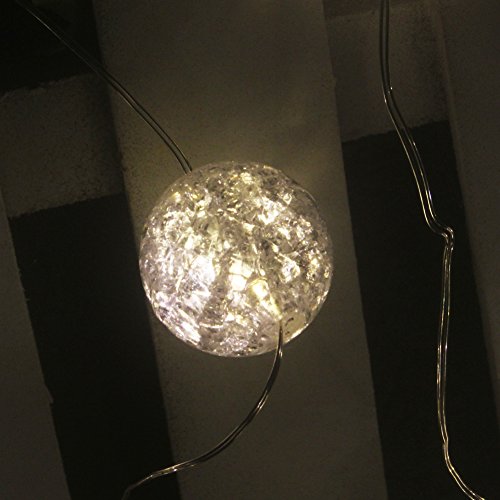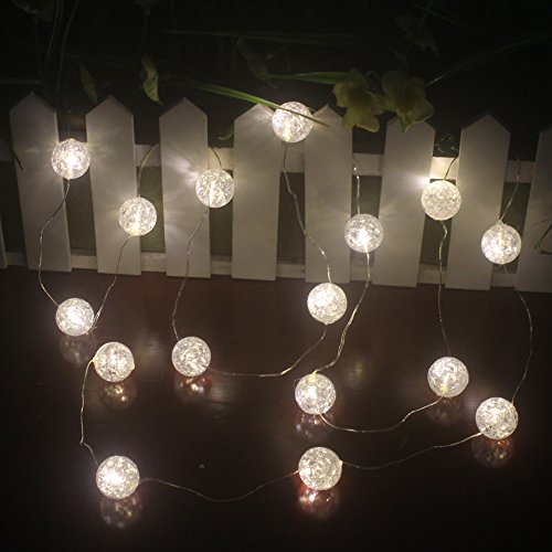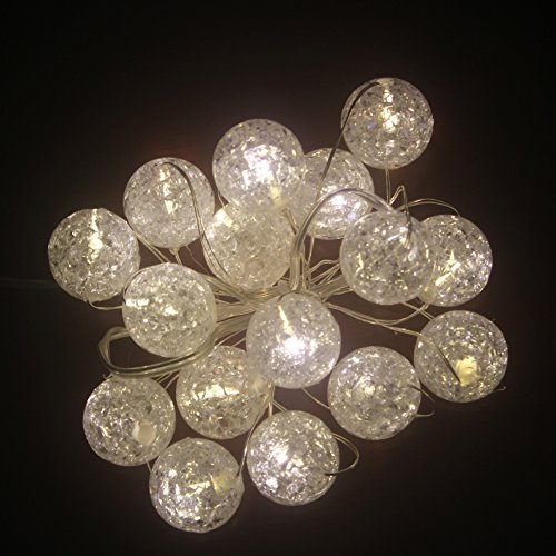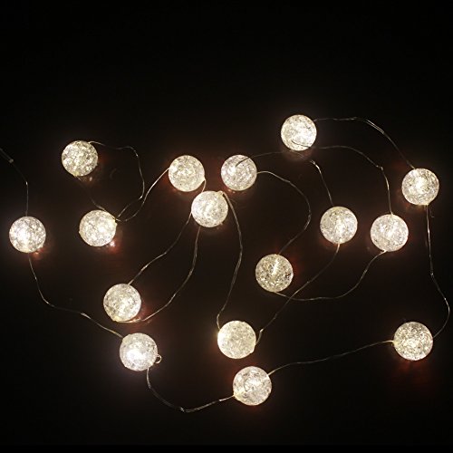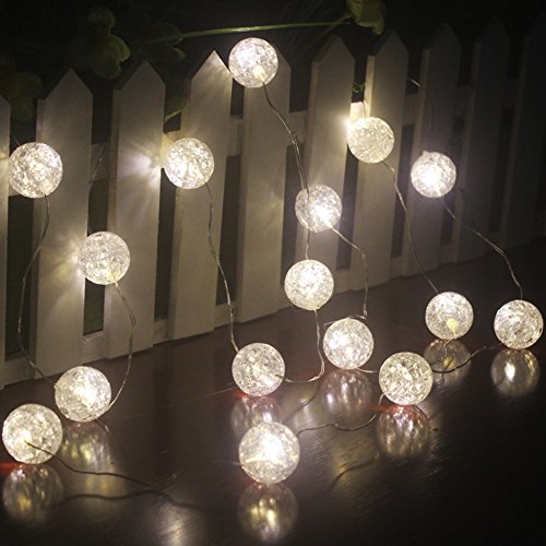 Ryham Battery Operated Crystal Ball String Lights Beaded Curtain Lights 16 LED 7.38ft 2.25M Fairy Globe Bubble Decor Lighting for Outdoor Indoor Patio Party Curtain Bedroom Christmas,Warm White