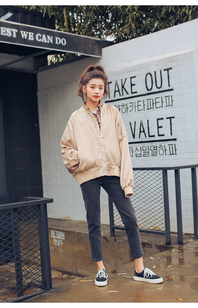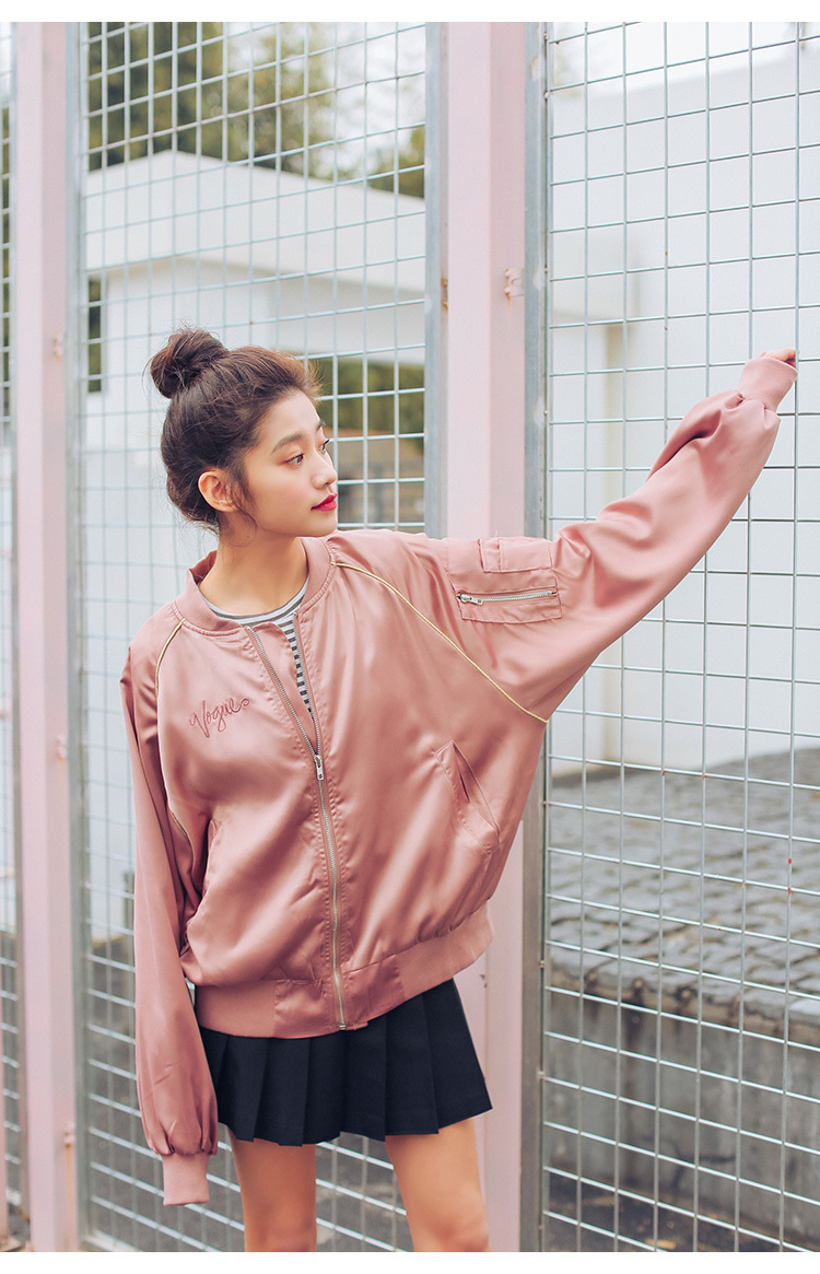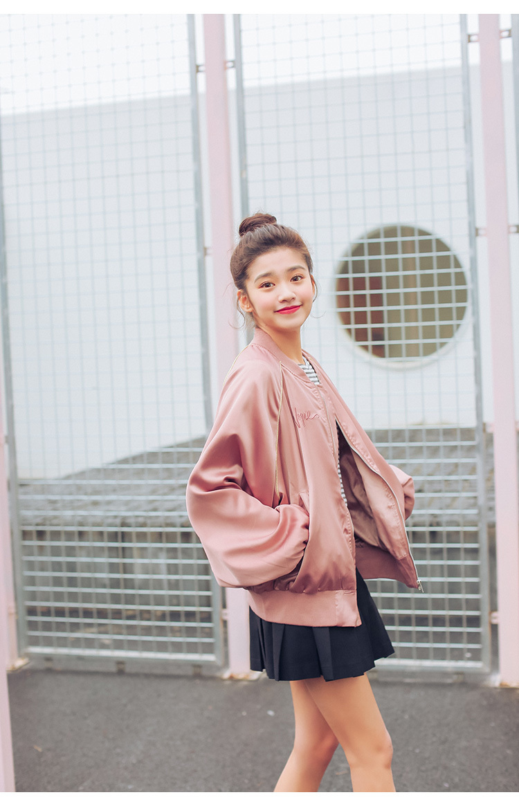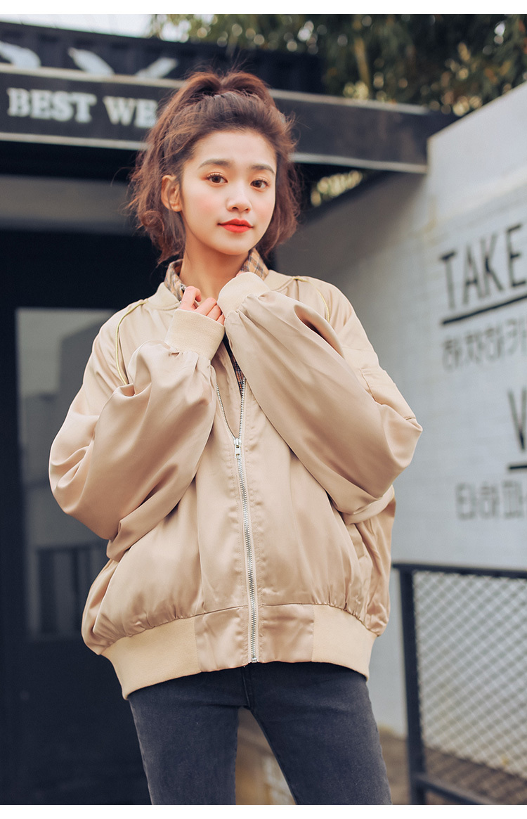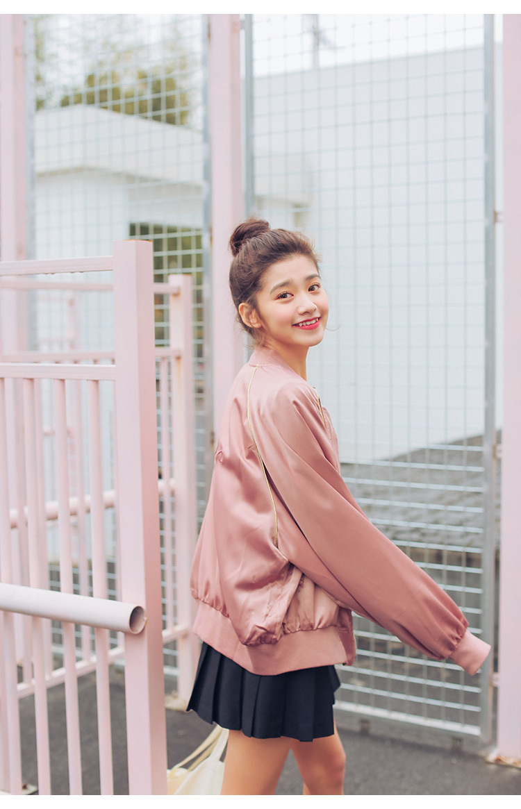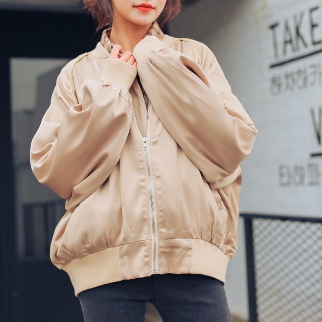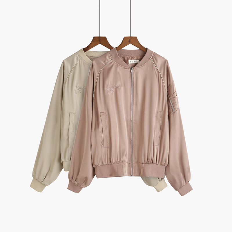 上質な輝きを放つサテン地が注目度アップ間違いなしのライトブルゾンです♪