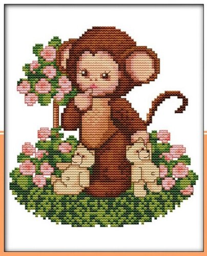 Happy Forever Cross Stitch,Cartoon animals, The lovely baby monkey