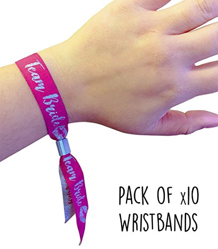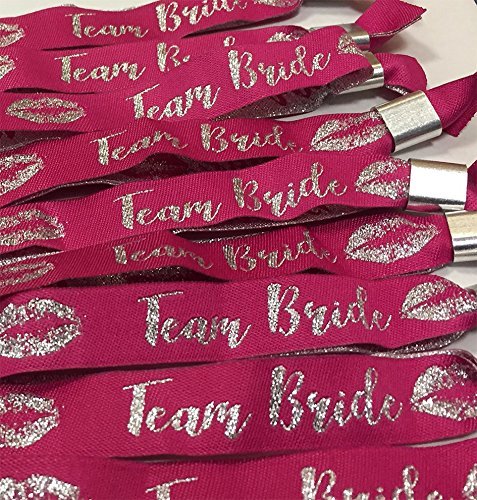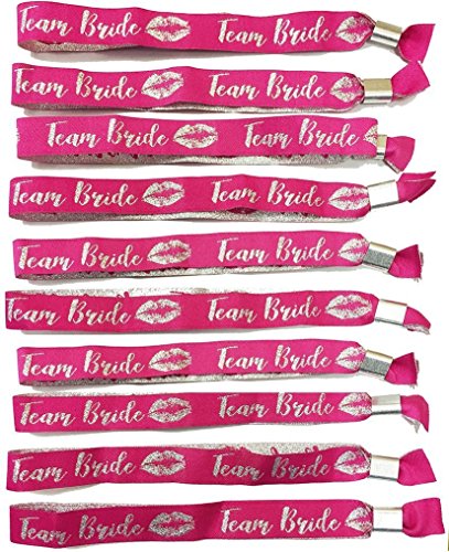 Bachelorette Party Favor Wristbands - Team Bride - Pack of 10 Pink & Silver Wristbands