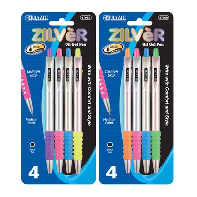 -. Title : Zilver Side Click Rollerball Gel Retractable Pen, 4/Pack
