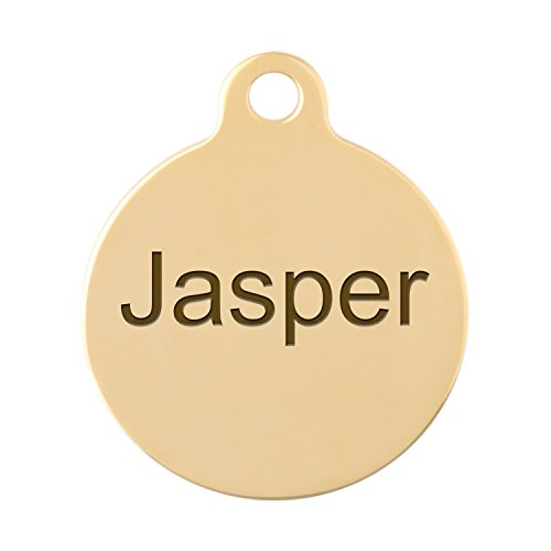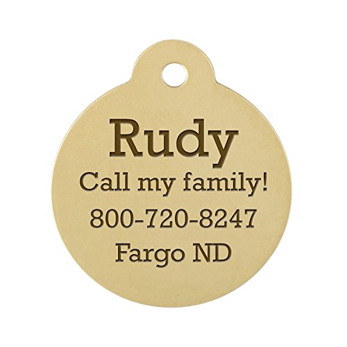 These Round Dog ID Tags are perfect for a simple but effective way to keep important information on your dog. With your choice of 2 sizes and 4 materials, you are sure to find something that will work for your buddy. These tags are also great due to the fact that you have room for up to 4 lines of text with up to 15 characters each. You can even choose your favorite font! So, keep your dog safe and easily identifiable with these durable tags! Includes matching s-hook split ring for your choice of attachment. Available sizes: Small - 1 in diameter and Large - 1 1/4 in diameter. 0 |