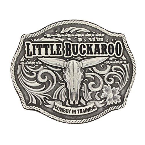 Studio : Montana Silversmiths Publisher : Montana Silversmiths Binding : Apparel Product Description Montana Silversmiths Buckaroo Skull Buckle features an engraved skull with twisted rope trimming. It also features western swirls and barb wire. The buckle has a protective finish to prevent tarnish and a 1. 5" belt swivel. This buckle is perfect for a little cowboy in training. 0