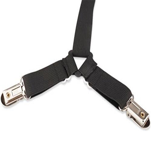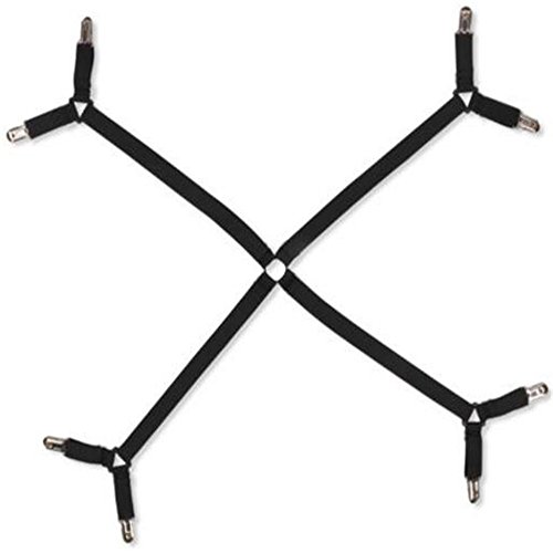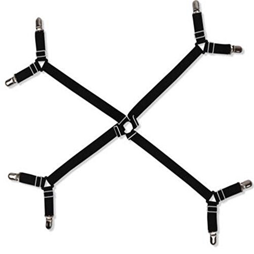 - Bed sheet fasteners for keeping sheets tight. 4 elastic and adjustable straps connect by a ring, with 2 nickel plated clamps of each strap. Crisscross design for holding sheet in four directions tightly.mattress clips holds mattress pads in place,a simple solution that's easy to use:just attach heavy duty clips and make the bed as usual.