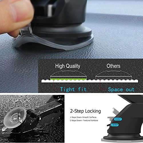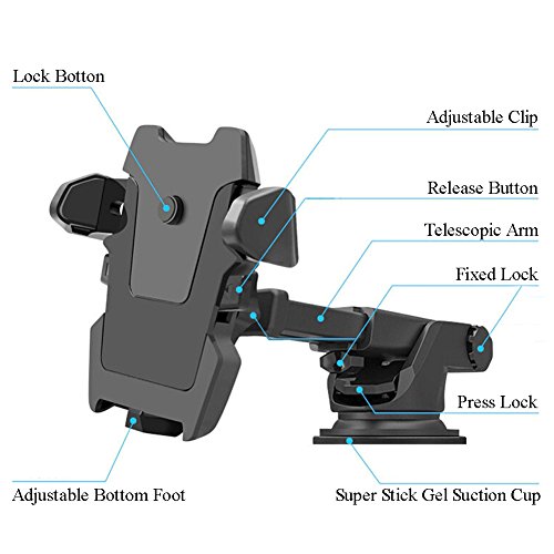 - For phone charging: car phone mount holder successfully avoid the mobile phone button and charging interface position, use navigation, driving, calling and charging will not be affected.Attention: Cell phone holder for car comes with two mounting gears, and you must lock the lock switch when you install it.The rotary beads can be adjusted up and down and rotated about 360 degrees. Rotary switch also can be up and down for 180 degree adjustment.
