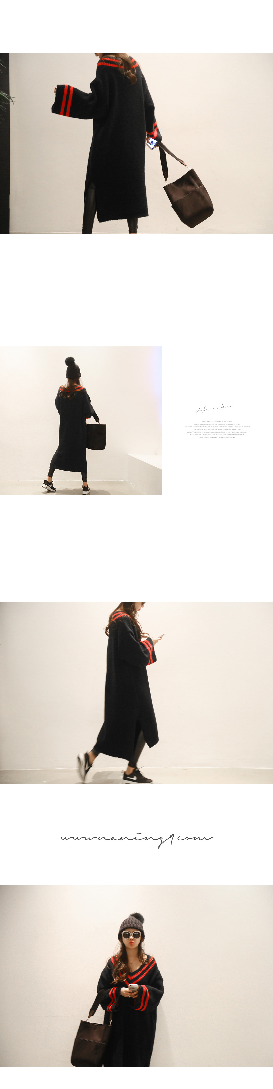 배색으로 포인트를 살려 줘 밋밋하지 않은 스타일을 보여준답니다. 롱한 길이지만