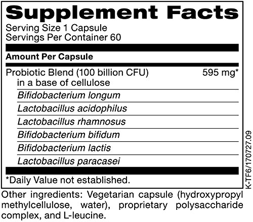 100 billion CFUs of freeze-dried probiotic cultures per capsule, provided in a base of cellulose.